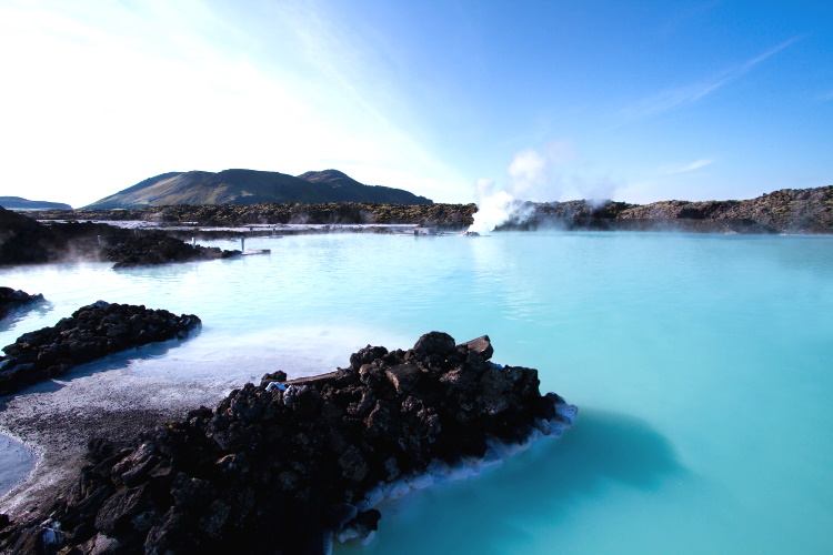 Inmitten eines Lavafeldes zwischen dem internationalen Flughafen Keflavík und der Hauptstadt Reykjavík hat sich ein Salzwassersee gebildet, der durch seine milchige türkisblaue Farbe einen herrlichen Kontrast zu dem tiefschwarzen Lavagestein bietet. Doch auch wenn die Blue Lagoon sehr fotogen wirkt, solltest du deine Kamera erstmal wegpacken und die Badesachen hervorholen. Die Lagune ist nämlich als Top-Wellness-Spot Islands bekannt und trotz oder vielmehr gerade bei kalten Außentemperaturen absolut beliebt. Hier kannst du bei wohlig warmen 37-42°C unter freiem Himmel baden und die heilende und entspannende Wirkung der sich im Wasser befindenden Kieselalgen genießen.