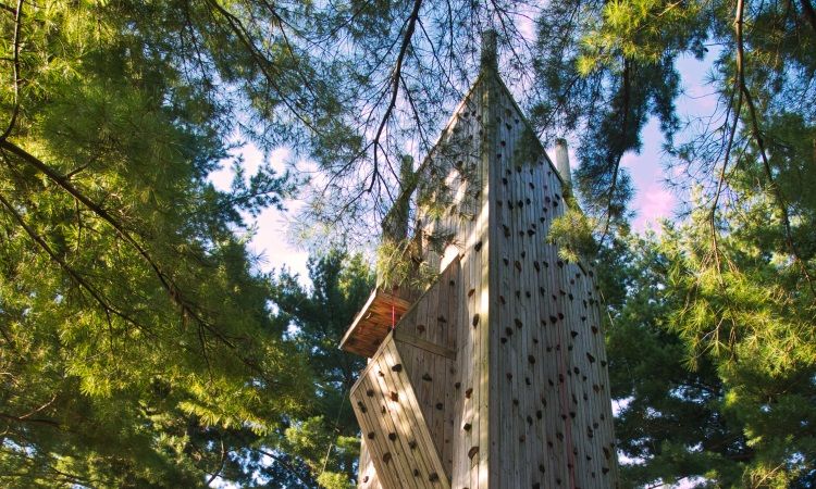 Unser Camp hatte zwei große Outdoor-Hallen, eine Dining Hall mit Küche, einen Medical Room, Holzhütten (die sogenannten Cabins), riesige Rasenflächen, Basketball- und Volleyballplätze, Fireplaces und mehrere Outdoor-Kapellen. Zusätzlich hatten wir einen Pool mit Waschhäusern, einen Craft Closet (mit allen Verkleidungssachen für die Thementage), einen See mit Seehaus für Kayaks, Paddleboards und Ruderboote, eine Bogenschießanlage und einen Kletterparcour.