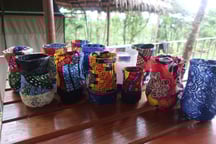 Außerdem haben wir an einem Nachmittag mit den Frauen aus dem Dorf Plastikmüll kreativ zu neuen Dingen verarbeitet. Umwelterziehung ist auch ein Bereich, wo man sich hier als Volunteer super einbringen kann. Auch wenn die Damen aus dem Dorf kein Englisch konnten: Mit Händen und Füßen sowie Mimik und Gestik konnte man sich doch irgendwie immer verständigen und Lachen ist sowieso eine universelle Sprache. Bei dieser Arbeit hatten wir alle unseren Spaß!