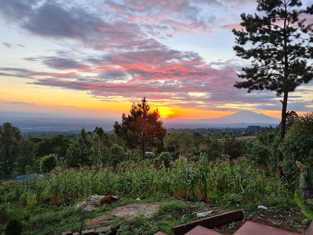 Im „Trees for Future“ Projekt erfolgte die Unterkunft im Kilimanjaro Forest Camp. Dieses liegt im kleinen Dörfchen Mweka auf ca. 1.800 Metern Höhe an den Hängen des Kilimanjaro, dem höchsten Berg Afrikas. Das Camp grenzt direkt an den Kilimanjaro Nationalpark an. Der Regenwald beginnt also direkt vor der Haustür, was zur schönen Folge hat, dass man auch das Tierleben dort live erleben kann. So war’s keine Seltenheit, dass Affen in den Bäumen saßen und einen argwöhnisch beobachteten oder ein Chamäleon gemütlich auf dem Gartengeländer vorbeispazierte. 🙂
