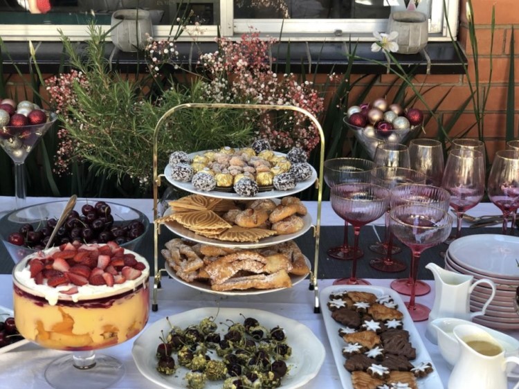 Zur festlichen Tischdeko gehören an Weihnachten in Australien sogenannte Paper Crackers (Knallbonbons). Das sind Bonbons, die man auseinanderzieht, um sie zu öffnen. Drinnen befindet sich oft ein kleines Geschenk, ein Hut aus Papier und ein kleiner Witz. Ich persönlich kannte diese Knallbonbons davor noch nicht und habe mich sehr über diese kleine Geste gefreut. Das Weihnachtsessen ist nicht sehr traditionell. Jede Familie isst das, worauf sie Lust hat. Aber meist isst man trotz heißer Temperaturen einen Braten. Bei uns gab es außerdem eine Vorspeisenplatte, die die Australier „Platter“ nennen. Sie war gefüllt mit Käse, Nüssen, Crackern und Früchten.