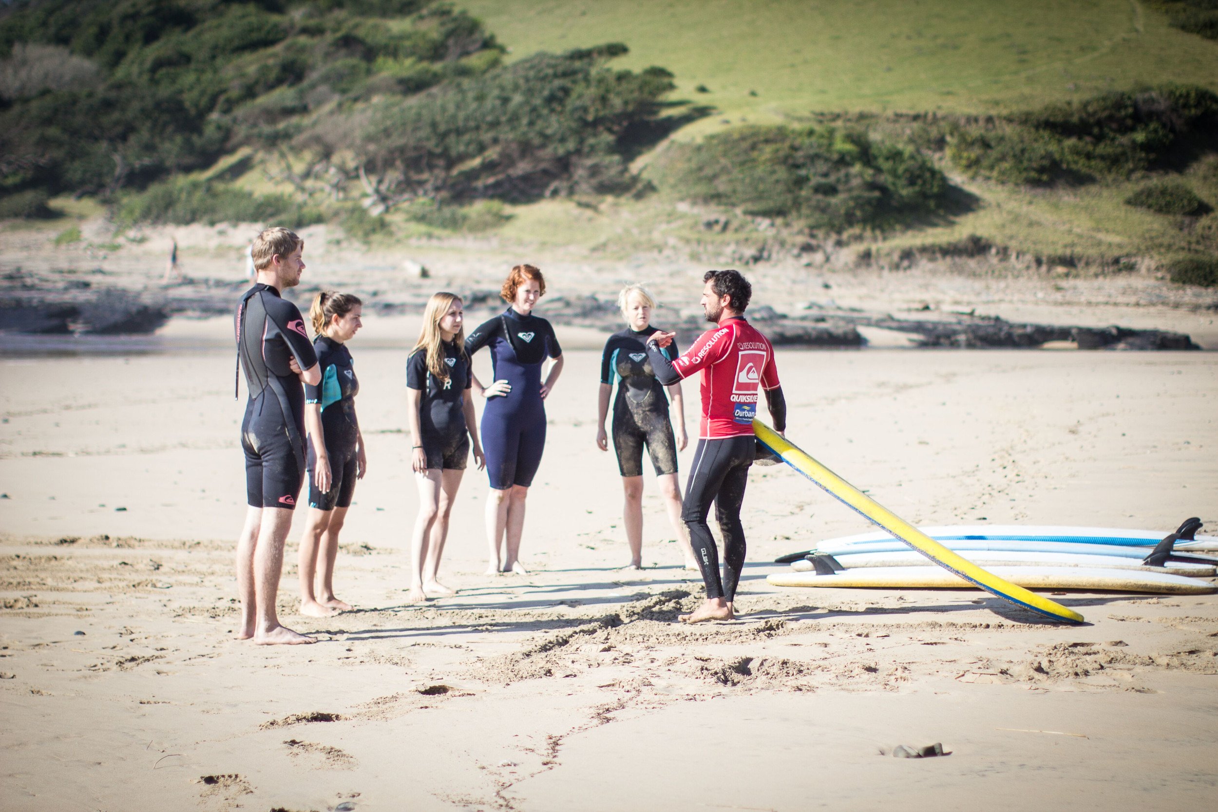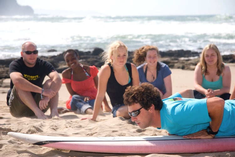 Morgens geht es für zwei Stunden mit einer Gruppe von maximal fünf Teilnehmern pro Surflehrer an den Strand für die ersten Unterrichtseinheiten in Sachen Surf-Praxis. Anschließend steht der Rhini Village Walk an: Du besuchst das nahe gelegenen Dorf und lernst hier alles über die dort ansässige Kultur der Xhosa.